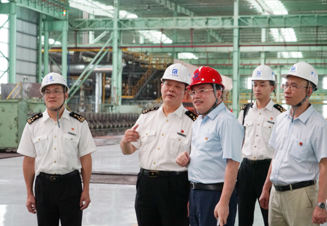 在热轧项目现场,徐建华一行实地考察了热轧生产线全流程,深入了解热轧的生产工艺和投产运营情况。随后一行人员在办公楼一楼会议室召开了座谈会。会上,王磊通过宣传视频详细介绍了公司近几年来的生产经营、工艺技术、码头建设及原材料进口等情况,并对海关系统一直以来给予公司的大力支持表示感谢,希望江门海关在提效降费政策方面多加指导,继续为企业发展创造更优的营商环境。